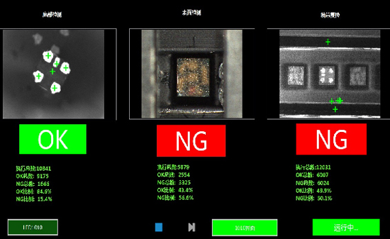 LED缺陷AI視覺檢測系統由我司自主研發,適用于貼片LED底部缺陷,正面反料、側料、倒料、缺料、邊緣毛刺檢測及包裝復檢,檢測速度高達45K/小時。過檢率小于萬分之三,無漏檢。檢測規格包含LED-1010、LED-2121、LED-2835等規格的貼片LED。本產品使用深度學習算法,產品具有高效性,準確性,可擴展性強等優點,突破了傳統算法限制。
