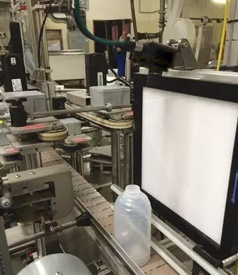 西安海克易邦光電使用尺寸為24英寸×24英寸的大光板(LLP)白色平板照明光源,為沿著生產線移動的蜂蜜瓶提供背光照明。使用高像素工業相機,捕獲瓶身上螺紋的圖像。